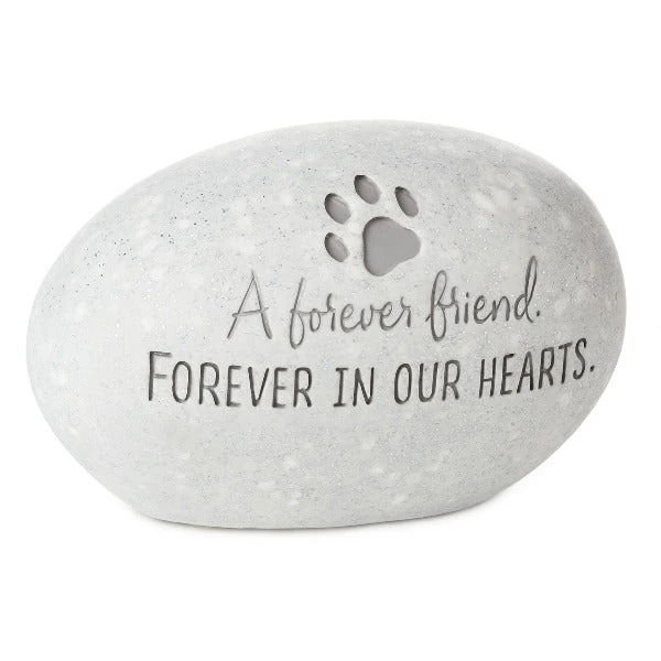 Encourage memories of a beloved pet who has crossed the rainbow bridge with this natural speckled garden stone that features a paw print design paired with a sweet message. Give as a sympathy gift to a friend or family member who has recently lost a family pet, or keep for yourself. Place the memorial stone near a pet’s favorite indoor or outdoor spot for added solace.