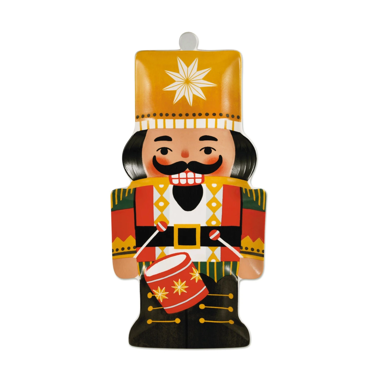 Drum some holiday fun into your kitchen decor with this cute nutcracker-shaped small serving platter that can double as a spoon rest when not serving up apps and treats. Holiday-themed nutcracker drummer in a red, green and gold uniform makes a great Christmas gift for a baker friend or hostess.